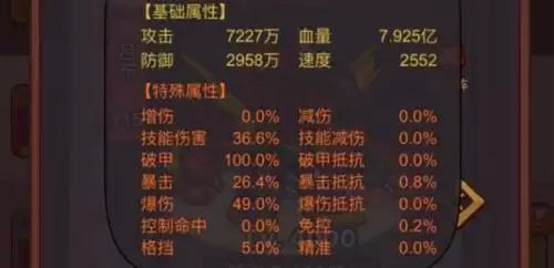3、然后到考虑次选属性:暴击、免控、技能伤害、破甲抵抗。有用属性:攻击、生命、爆伤。