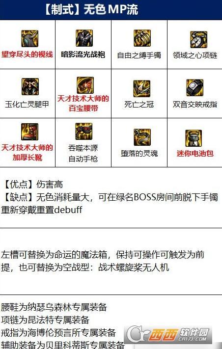 流派缺点:无色消耗量大,可在绿名BOSS房间前脱下手镯重新穿戴重置debuff