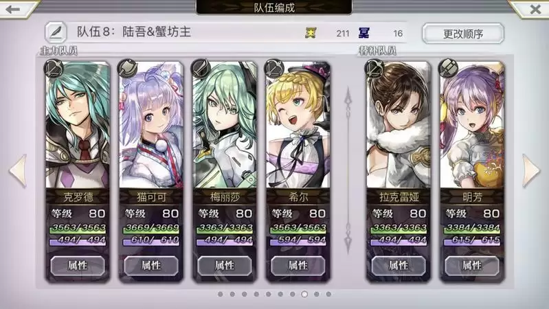 最后的是陆吾与蟹坊主:都弱地,蟹坊主不锁血…没什么好说的,另一个,陆吾锁血30%,总血条3.7亿,锁血后剩1.1亿,锁血触发下一回合伤害9999……看来是标准2T流程,思虑一番,阵容如下: