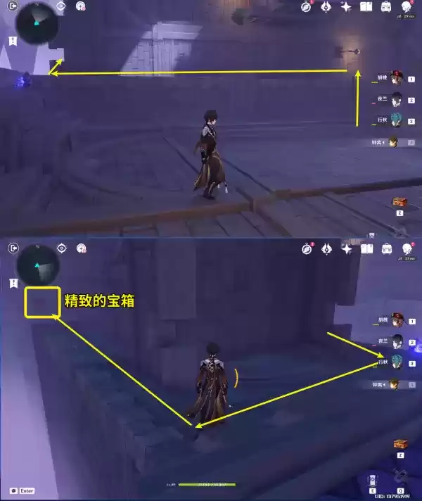 【③】顺时针连环机关第1个在这里。(下图中标注了宝箱1)