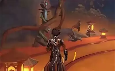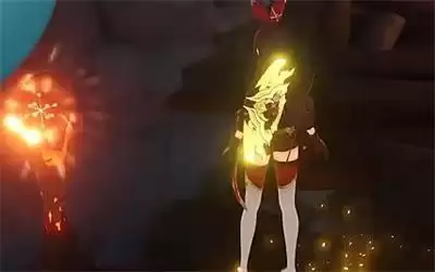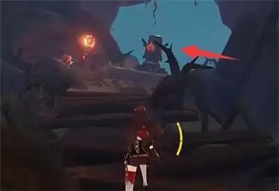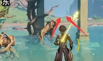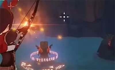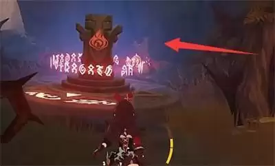 2、第二步:用火属性角色将水池旁的火元素柱子激活,然后水池里的水会下降一半。