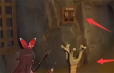 4、第四步:打开宝箱以后来到水池的另一侧,需要点亮三个火元素柱子,第一个在箭头所指的位置,二个在后面楼梯的左侧。第三个在门内兵激活大门开关(这是第九步的大门)。