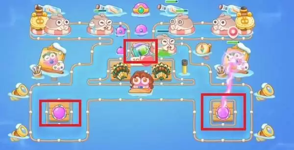 1、开局在中间放置两个分裂箭,先清理上面的障碍物,再清理怪和下面的障碍物。