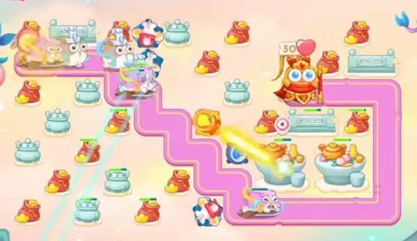 10.桃子打过之后继续补充防御塔,在右下角尽可能多的增加雷达塔的输出,也有玩家会使用火瓶子,但是稳定性还是雷达更稳一点。