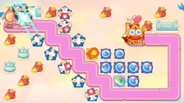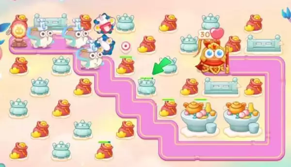 5.斜向攻击的飞机塔将终点上部的障碍打掉后有钱了,把火瓶子也可以升满,然后开始锁定右下角的障碍。