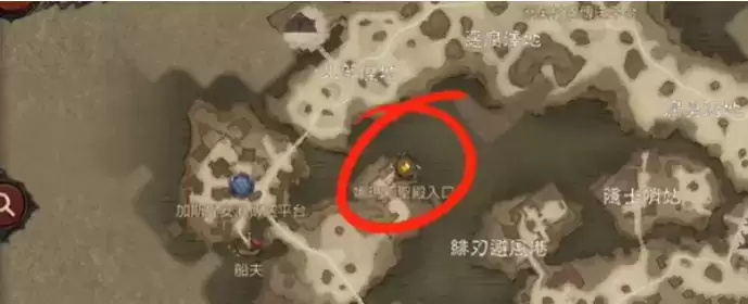 1、纳马力神庙副本位于拜儿芬岛的娜玛莉圣殿,即下图中的位置。