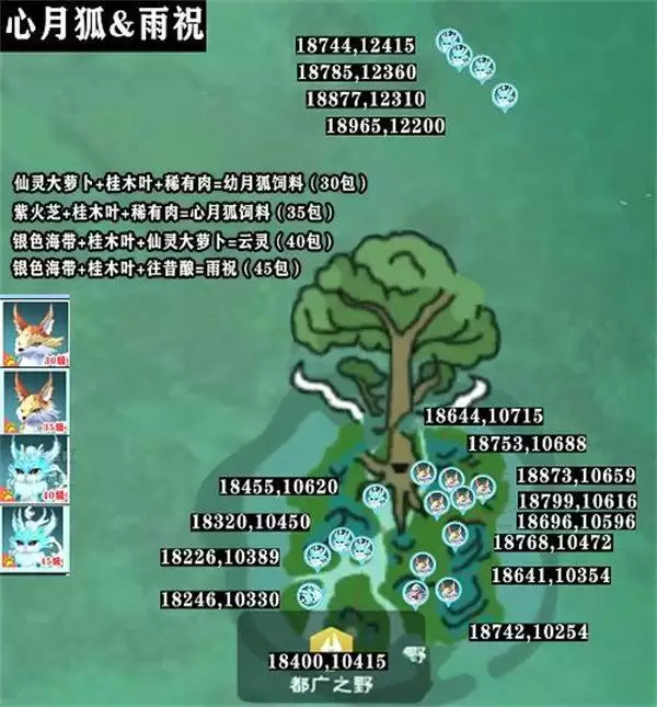 仙灵大萝卜+桂木叶:稀有肉=幼月狐饲料(80包)。