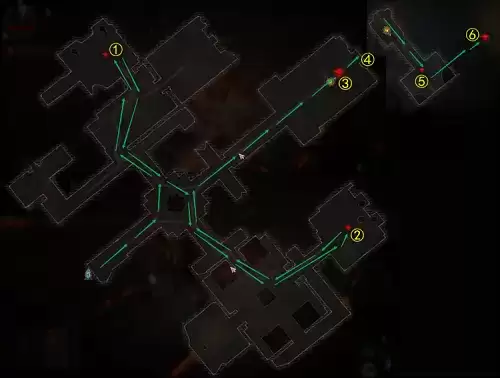 ① 击杀1号小BOSS重生十字架(重生雕像) → ②击杀2号小BOSS幽暗十字架(灵魂雕像) → ③击杀3号大BOSS国王法希尔(法希尔王) → ④进入下一层 → ⑤起动升降梯,击杀4号小BOSS巨大破墓兽 → ⑥击杀5号大BOSS雷吉西斯(赛吉西斯),结束副本