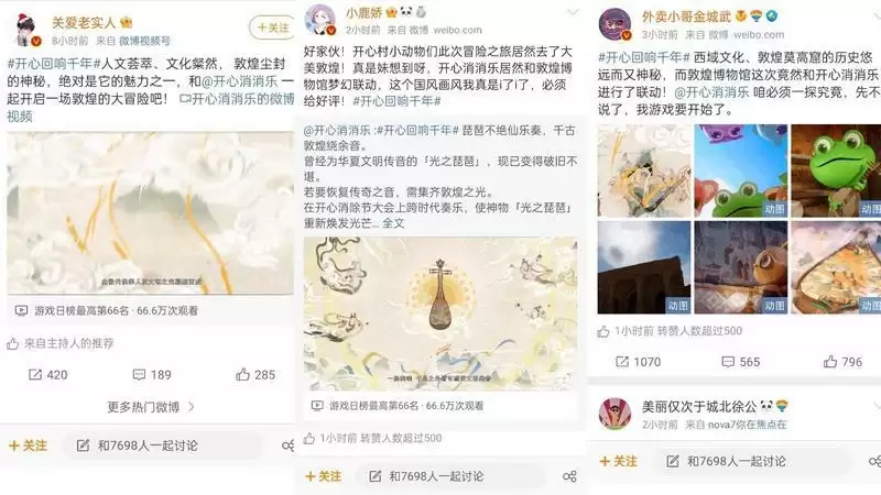 7月13日,当官方发布消除节CG,官宣联动敦煌的主题后的第一时间,广大用户就已经在社交平台上给予了一众的积极评价与期待,而网络大V的转发,更是将这种期待推向另一个新的高潮。