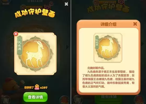 而当玩家在活动中完成对瑞兽壁画的修复后,还将弹出对应瑞兽的作品介绍,让玩家真正感受到敦煌文化背后的故事。