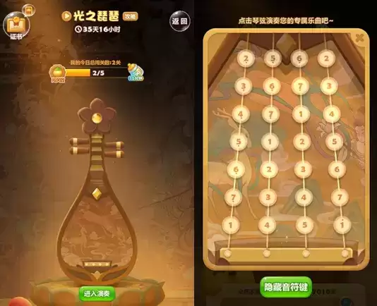 此外,更让人有Unbelievable之感的是,游戏中“光之琵琶”并非摆设,《开心消消乐》专门为其设计了演奏功能,并高度还原了琵琶的音色,还贴心地在琴弦上标注了音符键,随手一弹,便能感受到千年古乐的魅力,玩家甚至可以真的演奏出流畅的曲调,带给玩家不一样的沉浸式国风体验。