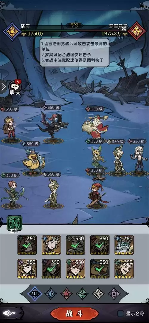 2.魔镜物语狩猎时刻4-2混混肯尼阵容站位如下,谎言浩图觉醒后可攻击最高的单位,罗宾可以配合浩图快速击杀。