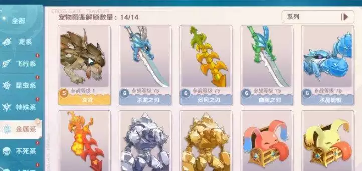 目前游戏中宠物图鉴中八种:龙系、飞行系、姆昆虫系、特殊系、金属系、不死系、人形系、野兽系。玩家通过宠物图鉴中就能查看到宠物的品质与排行情况。