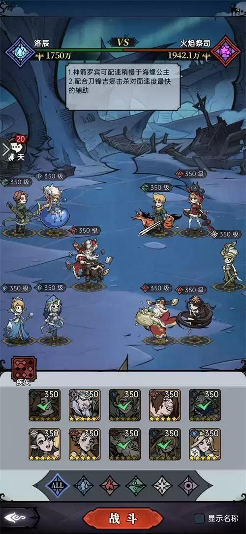 2.魔镜物语狩猎时刻5-2火焰祭司阵容站位如下,神箭罗宾可以配速稍微慢于海螺公主,配合刀锋吉娜击杀对面速度最快的辅助。
