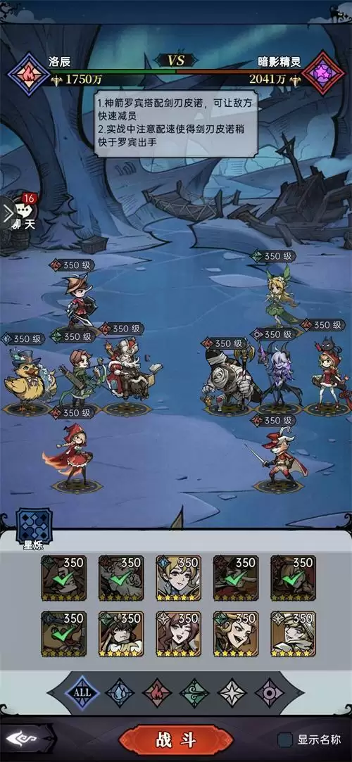 1.魔镜物语狩猎时刻5-1暗影精灵阵容站位如下,神箭罗宾搭配刃皮诺,可以让敌方快速减员。