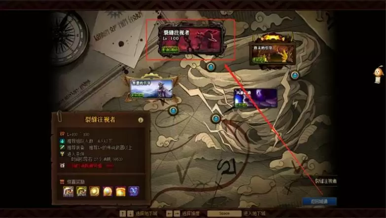 DNF进入裂缝注视者的方法如下: