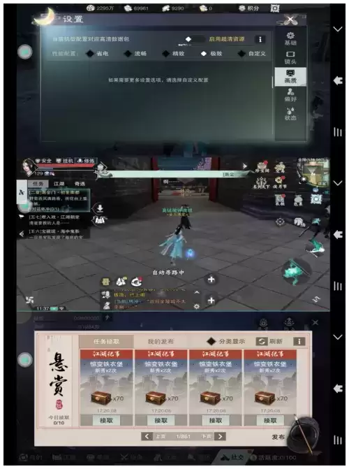 接下来是对流畅度的考验,从整体来看,游戏跑任务中间会有各种场景转场,普通手机如果出现问题,容易影响游戏收益。此外,考虑到有些游戏会和一梦江湖等MMORPG类型游戏一样,存在日常任务一条龙、生活采集、技能训练、多开打金等需要长期挂机的需求,我们也将部分游戏测试时间拉长数天,观察其挂机表现。
