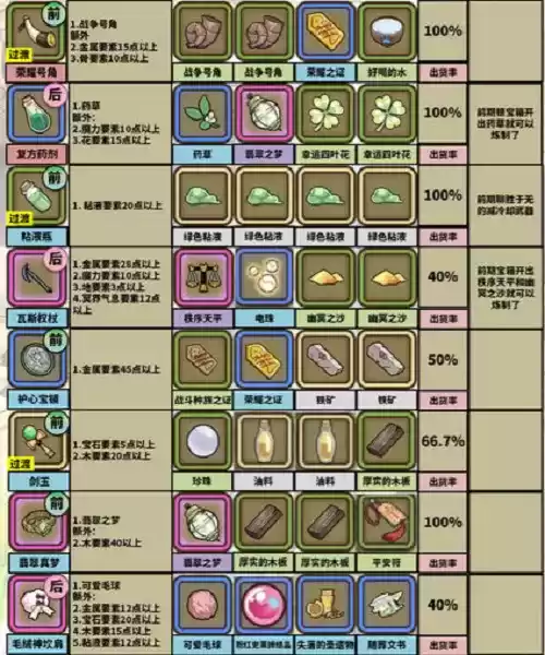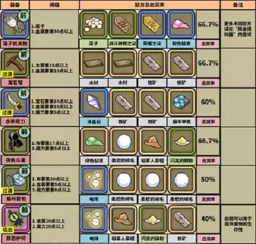 1、推荐表给出的配方仅为推荐配方,即权衡材料入手难度及其他用途