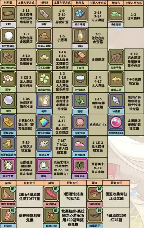 3、材料的入手方式有很多种,玩家可以参考下图的入手地点去获取。