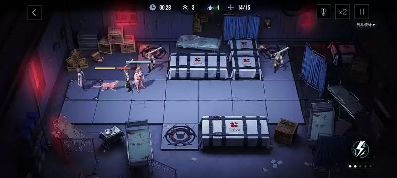 右上的怪是两只,伯爵在第二只到达站位之前是打不死第一只怪的,所以这里得开一次能量(一点就够了)召唤猫咪出来帮忙打怪,第一波就这么过了。