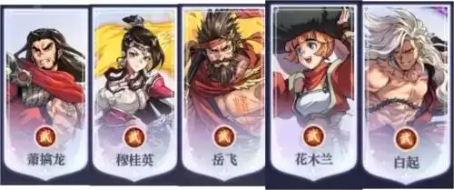 前期阵容萧擒龙、穆桂英、岳飞、白起、花木兰,前期如果资源跟不上,白起境界落后太多,可以先用别的卡替代,前期可以暂时用王翦替代,有芸珠可以用芸珠。前期高境界的萧擒龙可以应对绝大多数关卡,镇魔窟白起换成别的辅助,这套阵容前期pve表现出色,主要靠萧擒龙开局一拳秒敌方关键点。