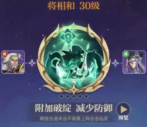 破绽队选择将相和和狂镰天劫,玩武者必须把将相和尽早升到满星,破绽buff主要靠将相和,有了满星的将相和就可以舍弃狂镰天劫换别的强力合道法术。