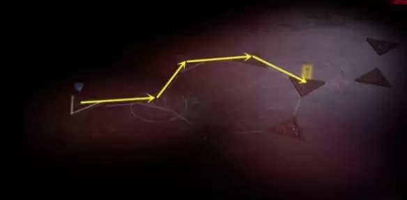 2、进入的第二层以后,我们只需要从初始点按照下图的指引来到黄色图标这里,就能返回到第一层。