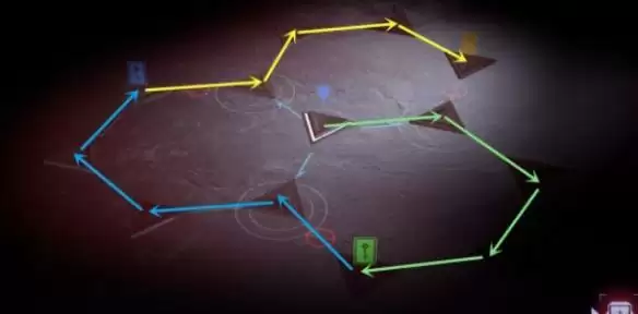 5、在新区域按照绿-蓝黄的顺序依次移动,最后到达黄色图标处,传送到下一层。