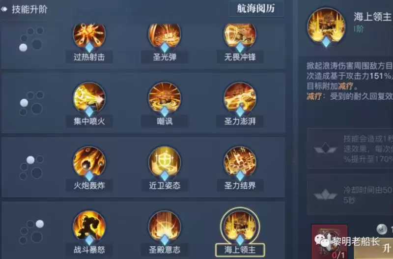 4技能“海上领主”的升阶价格昂贵,所以除了氪金玩家,其他玩家是不建议升阶的。