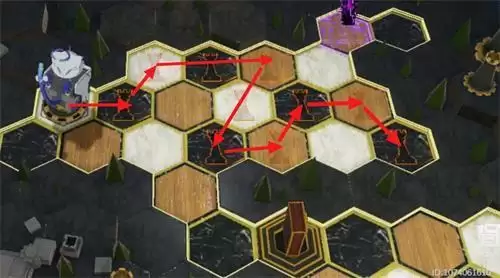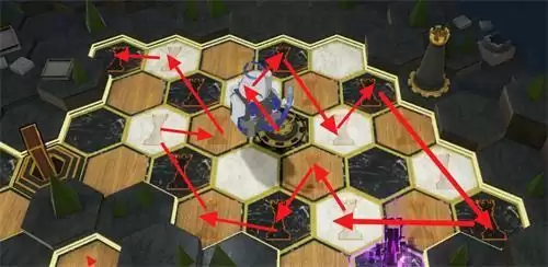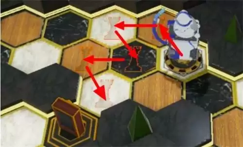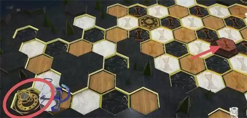 首先要在圈出来的地方使用机关使凸起的棋盘落下,才能开始正式的解谜。