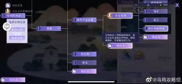 点击保存点的时候,拓扑图后续发光的位置代表从此保存点进入后可进行的探索行动。