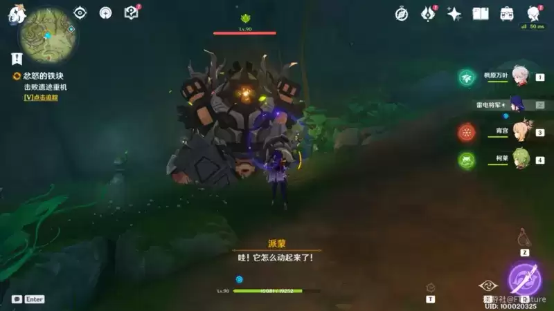 任务触发位置如下图所示,到达之后可以看到一个兰那罗轻轻松松一击就打败了遗迹守卫,它就是我们要找的兰百梨迦。