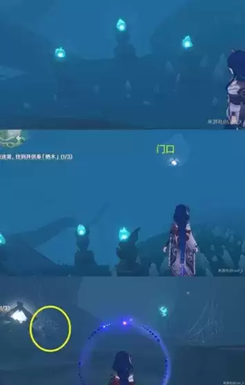 2、进入鹤观岛,找到阿璃对话后去供奉栖木,找到3根羽毛。