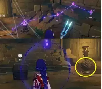 6、先拿门左边的继电石,放到如图位置,墙角还有一个。