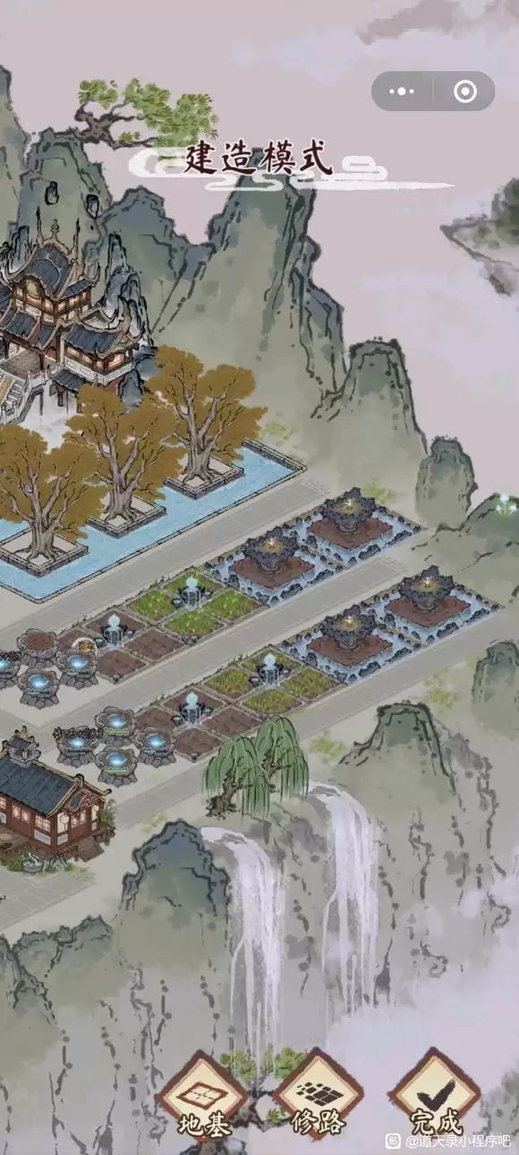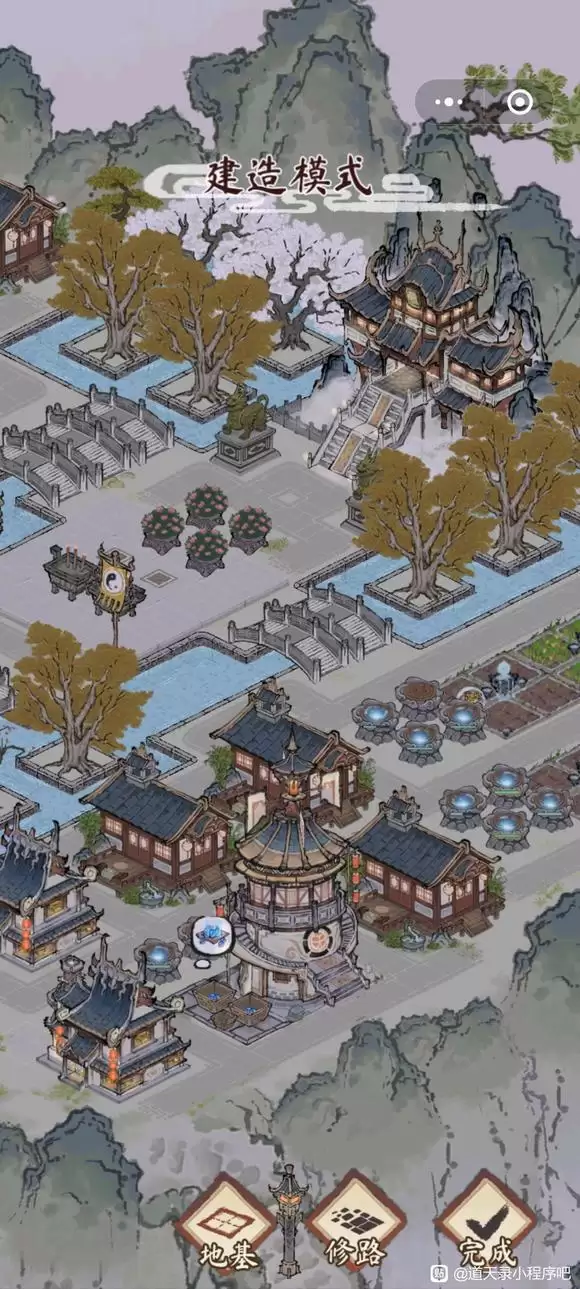 目前地图还没开完,9符的地符还没凑够,只有主场地和左边能用,比较紧张,树和矿一共就放了3个,生产建筑和药田灵田都是满的,主要是为了突出宗门大殿的位置,其他功能区都被切割了,凑合用,后面地方大点了再说,个别角落布局也借鉴了贴吧大佬的思路,