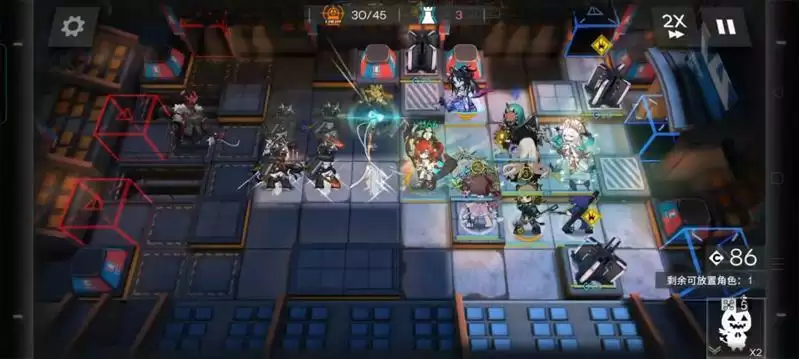 依次部署芬↑推王↓夜莺↑煌↓斯卡蒂←开芬下面的灯,小羊↑,星熊←,之后微微安娜一出现直接下42秒了她。42应该可以往前一格,早点拦住另外一个boss,图中位置最后会残血需要煌和小羊来打掉。