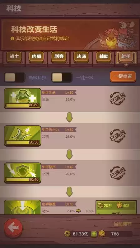 在战士科技点满的前提下,尽可能多的点射手科技出来,这是重点中的重点。
