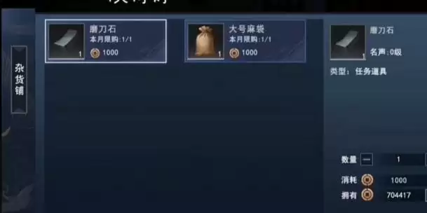 4、然后我们需要在他这里购买磨刀石以及大号麻袋。