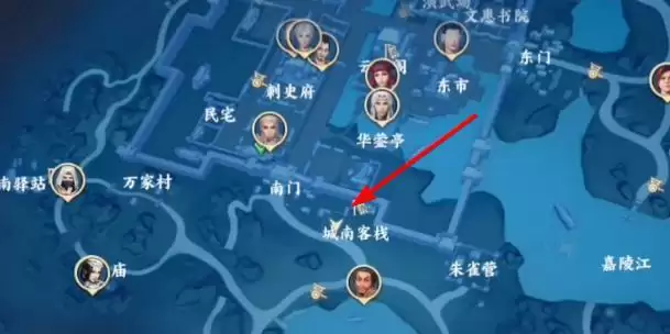 1、首先打开地图前往渝州城地图,前往城南客栈下图位置。