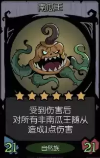 1、受到伤害后对所有非南瓜王随从造成1点伤害。