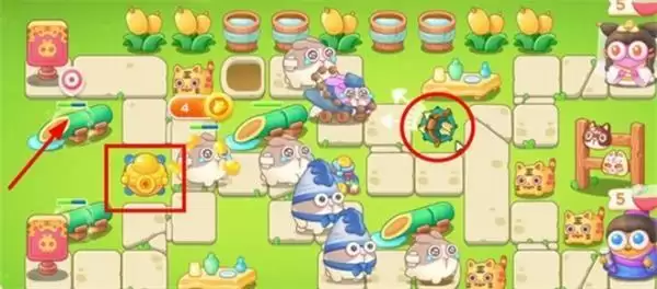 2.第二波,在下图位置处放一个多重箭,锁定旁边的小矮桌,成功打掉后,再锁定左下方的钱袋。