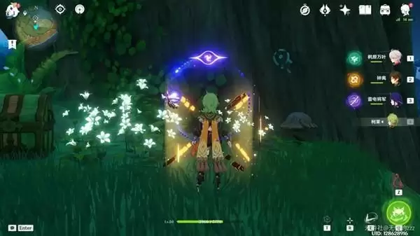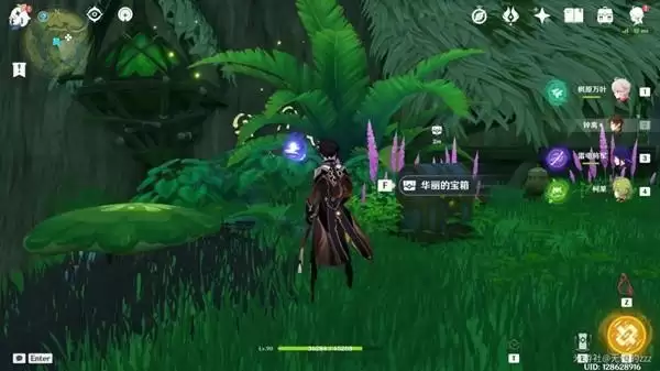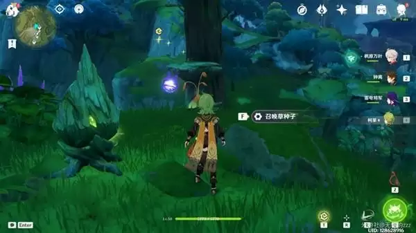 随后利用草种子击碎石块,我们会拿到一个奇馈宝箱,随后利用草元素激活蘑菇印记。