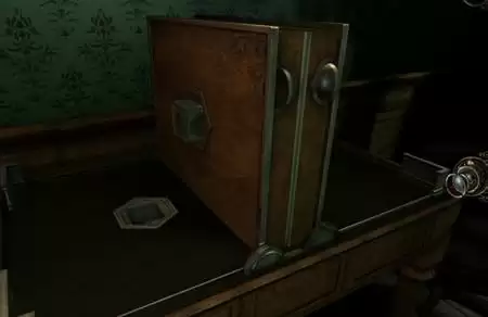 2、下楼,在这个女巫的占 卜机拉开下方的架子,拿到一个圆轮道具,其实它是一把钥匙。