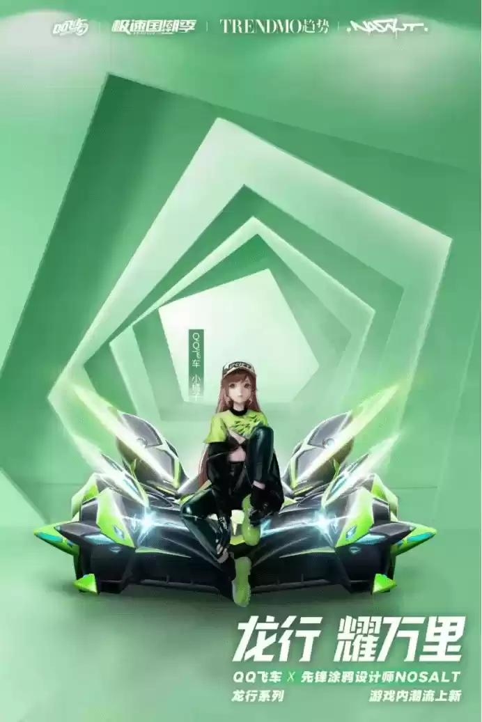 由得物入驻涂鸦艺术家 NOALT无盐所设计的“龙行系列”是“极速国潮季”的设计主题之一,也是《QQ飞车手游》本次荣耀勋章活动(通行证活动)的核心奖励。