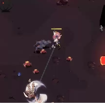 效果:角色面对地方挥出一道锁镰,围绕角色旋转半圈回到角色身边。挥出时,会高速自转,对碰到敌人造成伤害。
