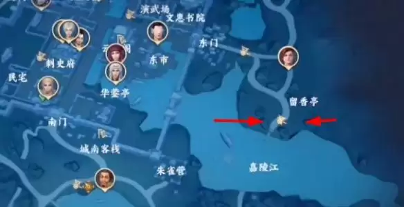 2、和张翰对话后领取拿盗轶事以后,我们需要前往嘉陵江下图位置。