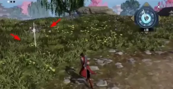 4、然后我们跟着罗盘来到光剑的位置处,如下图所示。
