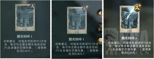 气象咒:有文案bug,三个等级的文案是一摸一样的…因为不清楚金色有没有更多的技能内容,同时难以辨别,因此无法评价。风暴中心看描述和普攻相关。