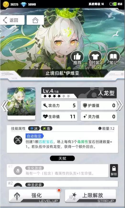 我在消除雷(紫)珠子时候,以及消除毒(绿)珠子的时候,都会优先充能2号位,必须在2号位已经充满的情况下,再进行消除,能量才会顺位流向3号位,也就是说,3号位不出意外的话,整局都开不了1次技能。(没错,这是我刚玩游戏时候组的砂卵阵容,可以看到我的资源都用到这些角色身上了)