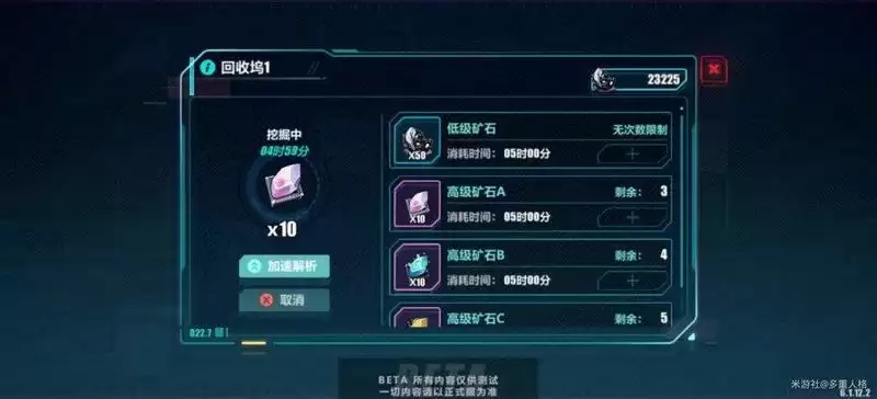 这些矿脉可以使用机器人进行挖掘,在光标指向蓝色区域时点击右下方按钮即可成功判定,当光标落在高亮蓝色范围内时还能够不消耗能量完成解析,最后阶段则需要快速点击按钮将矿石“拉”上来。